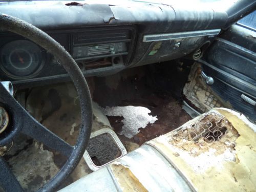 This car came out of a shed on my 93 year old late great uncle's farm in southeast iowa. The shed had no door and a dirt floor. I hauled it to my shop and put tires on that hold air. I found NO TITLE for this car. <<---INTERNATIONAL BUYERS LOOK BEFORE YOU BID!!!! The vin plate is hard to read but still in place, not sure if the numbers I have copied down are all of them. The cowl tag is gone. This is just a parts car. It was a disc brake car, but parts removed and in the trunk, drum hubs installed to put on tires for transport. Also in the trunk is harmonic balancer and water pump, maybe original to the car. The rear end is a 12 bolt posi with 3:55 gears, check the pictures. It has the 4 speed dash cluster as well. Rubber floor covering instead of carpet. The motor and transmission are not in the car. Keep in touch and they may be found for purchase later. The frame has an area of rot on the drivers side near the front of the door. The floor pans and trunk floor are rotted bad. The quarters, and pretty much all the lower sheet metal is rotted. The upper half of the car seems pretty solid, doors and windows function, and all glass is good but the windshield. The hood looked solid, and is latched in the front, but not bolted to hinges, only one hinge in place. The car rolls and steers for loading. Vehicle is sold AS-IS where is. Buyer is responsible for all shipping concerns. Full payment is due within 3 days of auction end by cash in person or transfer. No returns or refunds. A $200.00 NON-REFUNDABLE deposit is due through paypal within 24 hours of auction end or the deal is off. The car needs picked up within 7 days or it gets resold. Thanks for looking. |