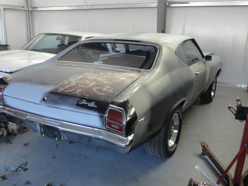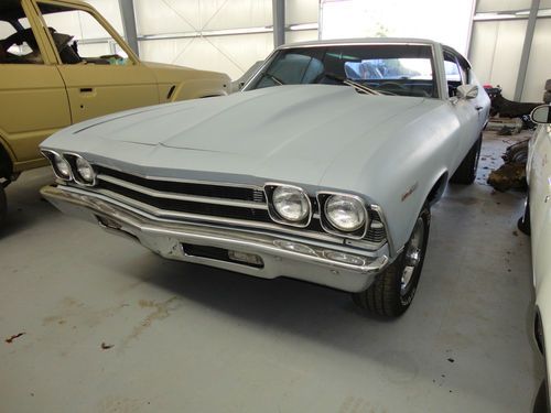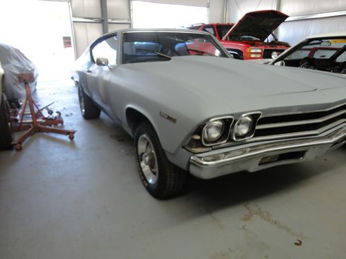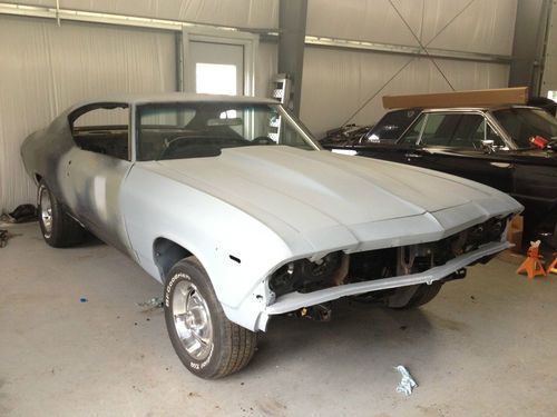 Nice 69 Chevelle project with most of the hard, time consuming bodywork finished. It has new quarters, 1 new passenger door, new right side fender,12 bolt rear end, new coil springs front and rear with big block front springs, new shocks. Fully painted frame, new body bushings, completely rebuilt front end. If it could come off it was rebuilt or replaced. New windshield, the rest of the glass is in good shape and its all tinted because this was a factory air car. The car has rally rims with BF Goodrich Radial TA tires on them new front disc brakes. Included in the auction is a 68-69 396 BARE block; good for rebuildable core. Block casting #3935440 which is a 396 2 bolt main block 325 or 350 HP. Also included are a set of rebuildable heads casting #3872702 which are 1966 396 or 427 closed chamber 98.4CC heads. A rebuildable Turbo 400 transmission is also included. The 12 Bolt rear is complete but will need new gears and diff carrier as they need rebuilding. It comes with a new Dash pad, all weather strips, rubber seals, window fuzzies and a new black carpet. Car is in presently all stripped ready for prep, priming and paint. The first 5 pics in the gallery show it the way it sits now. We just stripped all the chrome, moldings, badges, handles door locks, bumpers, grille and headlights, tailight extensions and all the interior for paint. All of these will go with the car. Interior is mostly complete as shown in some of the photos before we stripped the car. All interior pieces in decent condition; can be used or replaced depending on your taste. No front seat included. The Chevelle has clear CT paperwork to transfer to new owner. I have the registration and CT Q1 Bill of sale - No titles issued to vehicles 1981 and earlier in the state of CT. I reserve the right to end this auction at anytime due to having the car for sale locally. Car must be paid for in full and picked up within 7 days of auction closing unless previously arranges This is a project vehicle that is sold as is where is with no warranties whatsoever. Reasonable reserve. Please ask any and all questions.