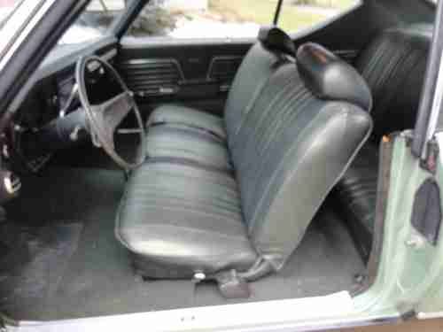 The interior I would also consider excellent, the seats are perfect, no cracks in the dash, headliner is perfect, original door panels are real nice as well as the original carpet. The car only has 73,420 miles on the odometer and it shows it has been well taken care of. The bumpers have been rechromed. The front suspension has also been rebuilt with new bushings, tie rods, and ball joints. The car needs nothing...unless you want a posi rear. It still has the original open 10 bolt. The trans is a turbo 350 with mild shift kit.