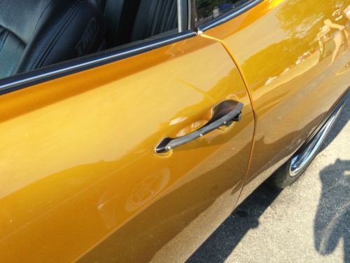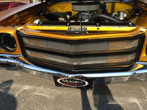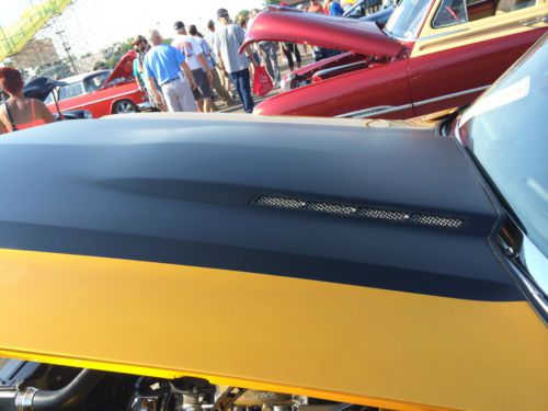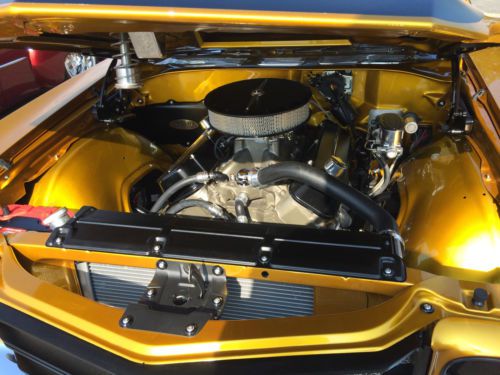This is a High-End custom show car that was just finished July 11th. It has a ton of One-Off pieces and a full custom interior. The paint is PPGs Vibrance candy pearl Sunburst Yellow with PPGs Ditzler Hot Rod Black satin trim. The hood has custom one off fabricated aluminum vent inserts in the sides of the cowl scoop with stainless mesh behind it. The rear spoiler is a custom one off aluminum piece that I designed to flow with the car. The rear bumper has a one off two piece aluminum insert designed to mimic the original rubber insert only more aggressive with stainless button head fasteners around the perimeter. The panel below the rear bumper has been molded into the body and the rear marker lights have been shaved to clean up the exterior. The rear taillights are sequential LED units. the outer door handles are Ring Brothers custom black anodized two tone black with stainless bolts running down them. The door locks have been shaved and electrics have been installed. The emblems are custom machined in the same two tones of black. all the external trim is satin black. The grill is a one off custom fabricated aluminum piece with polished stainless mesh behind it. The front marker/turn signals are LED also. The headlights are blackened HID units. The Wheels are Intro 22" rear with 285 tires, and the front are 19" with 245 tires, and they have polished backs as wells. The rear brakes are custom 14" rotors with Wilwood polished 4 piston calipers and the fronts are 12.19" rotors with polished 4 piston calipers. It has a Wilwood polished big bore master cylinder and a Hydratech Hydraulic brake booster for consistent braking at all RPMs. The rear end is a Currie 9" with a Tru Trac and Hotchkis rear springs/shocks/and sway bar and a 3.50 gear. The fuel tank is a Ricks Stainless. The fuel pump is a Holley 125HP with the matching aluminum fuel filter inline. The rear spring and shock mount have ben raised 3" to set the rake on the car. The rear control arms and Billet aluminum with billet adjustable uppers. The drive shaft is a heavy duty with heavy duty u-joints and u-joint girdles on the rear end. The entire frame has been smoothed and the welds taken out and paint Ferrari metallic black with PPGs new satin clearcoat system. The front has tubular upper and lower control arms with Heidts drop spindles with the raised upper ball joint to improve caster. The front has Hotchkis springs/sway bar/ shocks and billet tie rod adjusters. The power steering box is a variable ratio AGR billet unit. The radiator is a BeCool module unit with the twin electric fans. The engine compartment, smooth firewall, and entire underside of the floor has been painted the Vibrance candy pearl sunburst yellow with satin black 3" Flowmaster exhaust system. The tailpipes have custom one off internal tips out of aluminum with polished edges. The transmission is a Super T-10 4 speed with a Hurst Competition plus shifter with custom Ring Brothers shifter. The clutch is a RAM high performance unit rated at 650hp. It has a Lakewood Scattershield. The engine is a fully ported and polished heads with new valves and springs and Harlan Sharpe roller rockers. The valve covers and air cleaner are Billet Specialties. It has a Pete Jackson noisy gear drive and an Isky cam. The rods also have been polished and the rotating assembly has been balanced. It has 10.6 to 1 compression with the forged pistons. The intake is a Weiand Team G and carb is a Holley 850 HP double pumper with a braided throttle cable. It dynoed at right at 600hp. The interior and trunk is fully custom with suede inserts and stainless button heads throughout. The dash is custom with a Dakota Digital gauge unit that glows red, a Billet Specialties steering wheel, Clayton Machine Works custom cut out clutch/brake/ gas pedals. It has a high end Pioneer stereo with Sirius satellite radio, Infinity speakers throughout, and an Alpine hidden subwoofer and Alpine monoblock amp.The carpet is custom Mercedes and the headliner is a custom one piece embossed suede. The dash has a Vintage air control panel and Vintage air heat/cool factory fit unit installed but the compressor is not on the engine. The console is a custom one off fabricated piece wrapped with suede inserts. It has power windows with tinted glass. The rear package tray is a one off 3 dimensional piece with custom stainless mesh speaker holes as well as the door cards. The exterior mirror is also a custom fabricated piece. This is a high end custom show car that is fully detailed top to bottom. No bolt has been left unturned and everything was built to make the car as strong as possible and still be show and go. Feel free to ask any questions. This car was just completed July 11th, so it is fresh and ready to be shown or driven.
