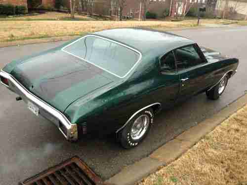 New drivers floor panel, both new fenders, both new quarters, new full trunk pan, new trunk filler panel, new gas tank, new bumpers front & back, head light trim, door hands, and trim around the windows have been polished. True Cowl hood but non-functional, and the car has New green Paint with black SS stripes Rust free. It sits on a nice set of 15x8 Rally wheels with new tires. All glass is there and in good condition. New interior, Carpet, set covers, door panel, headliner, and dash pad. New SS dash needs to be installed "needs cluster". Will make an excellent SS clone, four speed or automatic. I have what you need to make an SS and I have what you need to make it a four speed car, the 4 speed hump has been install into the floor. There's a let of new and extry parts. Feel free to contact me if you have any questions or more picture. LOW RESERVE... 615-207-4286.