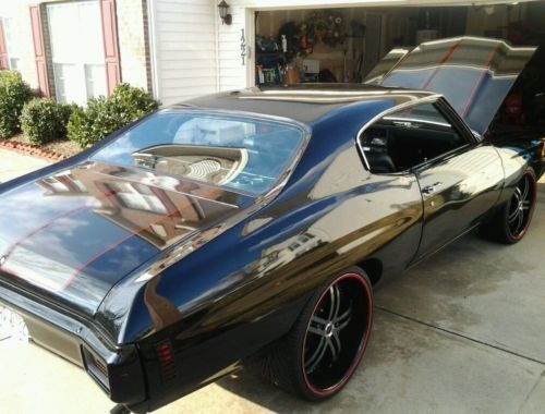 1970 Chevelle Black - 350ci motor, Th350 Trans, 10 bolt rear, power brakes, dual exhaust, console shifter, bucket seats, clean interior, starts easy, runs strong, nice paint, 22 in wheels, 22/30/255 tires in the front, 22/25/275 tires in the rear, factory AC car (not working at present).