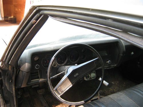 This is a 1970 Chevelle Super Sport... This is the real deal.. This car was put away in a dry barn back in 1990... Its an original SS 396 car with a factory 4 speed with a bench seat and a 12 bolt posi- rearend with factory sway bar (F-41 suspension).. Also has factory cowl induction hood with the flapper in it... The frame and under carraige are very nice and solid.. I not sure if this is a # matching car... So lets assume that it isnt.. The motor does run .. This car has 87,000 original miles on it.. I have extra parts in the trunk... This car has all the correct SS badging on it and dash with the factory tach... The interior is all there and in fair to good condition...The carpet was taken out in 1990 to preserve the floors... This car will go to the highest bidder and is a solid restorable car... Happy bidding...Thank you