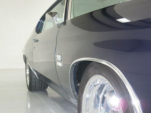 You are bidding on an immaculate and amazing 1970 Chevelle SS Pro Touring car. This car is a ground up, frame off restoration of a rust free Arizona desert car with less than 1,000 miles on the restoration. No expense has been spared and only the best materials, components and workmanship has been used. Personal attention was paid to the smallest of details when building this car. There is over $90,000 invested in this car and it has been appraised at $125k. This car is the total package of vintage look and modern technology, with enough chrome to win car shows and awards while at the same time was built to drive.