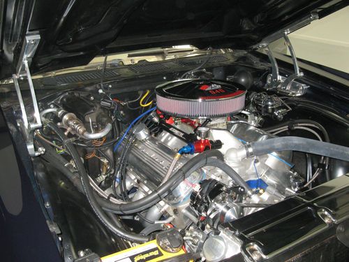 The engine is a 540 cubic inch motor built by a NASCAR engine builder who still owns track records with engines they built. This is a Dart Big M block with Dart Pro 1 aluminum heads and a Dart Hi Rise intake manifold. All forged lower end parts. The top end is a Comp Cam, Scorpion Roller Rockers, Pro Systems HP 1000 Carburetor. To fire this engine there is an MSD distributor and a 6AL MSD ignition as well. The engine dyno'd at 685 HP at 6,000 RPM and is good to 7,000 RPM easily. This bad boy generates 660 lb ft of torque as well. The engine is fronted by a polished aluminum and chrome March Performance serpentine pulley system. To let the engine breathe we installed custom Lemons 2.5" headers and affixed them to a 3" Pypes stainless steel exhaust system with Crossovers to Race Pro mufflers and polished stainless steel exhaust tips. The exhaust note and sound is awesome.