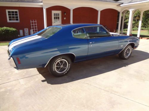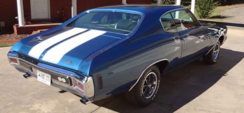 1970 Chevelle SS396. This is a fully documented, matching numbers 1970 Chevelle SS396. Build sheet, Protect-O-Plate, and original manuals are included with numbers matching VIN to engine/transmission and body. She has been completely frame-off and rotisserie restored with originality in mind, every nut bolt and part has been removed, restored, rebuilt, or replaced, completed in November, 2013. All invoices, build documents, and pictures will be provided. Only 250 miles since restoration.