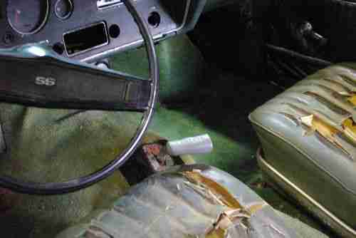 Car has complete interior but will need to be replaced. Bucket seats with console.