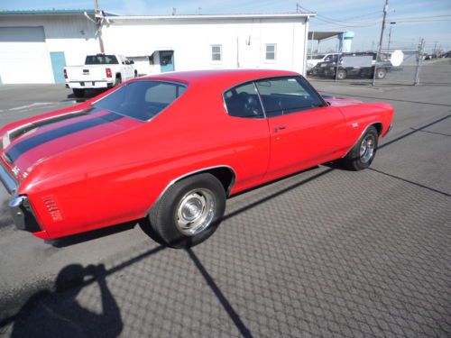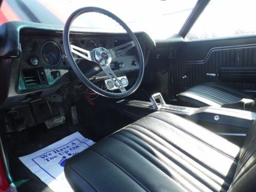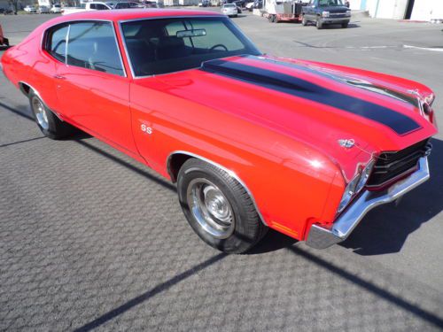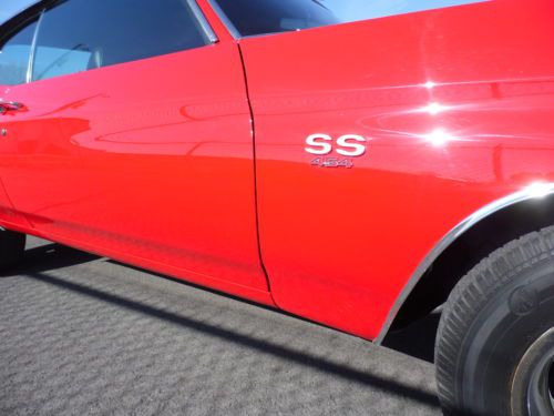 Up for auction is this beautiful 95% restored 1970 SS Chevelle clone. The engine is a 454 that is bored 60 over. It has a mild cam with roller tip rockers. It has unbelievable power! I purchased the engine already built so I don't know any more of the details as to what is inside it. It does have less than 1000 miles on it. The transmission is a newly built turbo 400. The car has new headers, mufflers and exhaust pipes. The tires are probably 60% with rally wheels and flat caps. The paint job is brand new and been garaged every day! Prior to me owning the car, it was originally a California car. It has absolutely no rust in the car, not before the paint job either. It has a 12 bolt rear end in the car with a 373 gear. The interior has new seats, carpet, door panels, hat board and dash pad. The car needs just a few things to be complete. The speedometer doesn't work and the wipers don't either. This is a factory air car but I don't have the compressor or the brackets. Feel free to ask any questions.