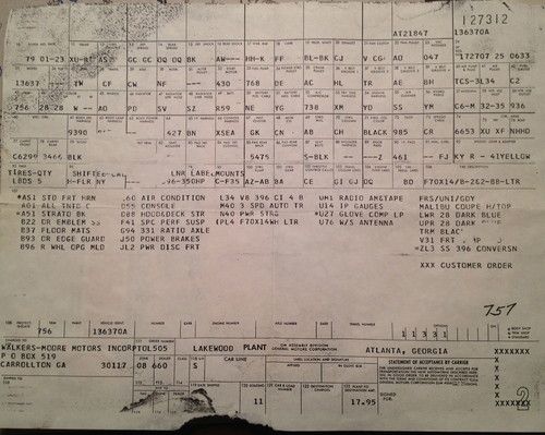 1970 Chevy Chevelle "True SS" with Build Sheet