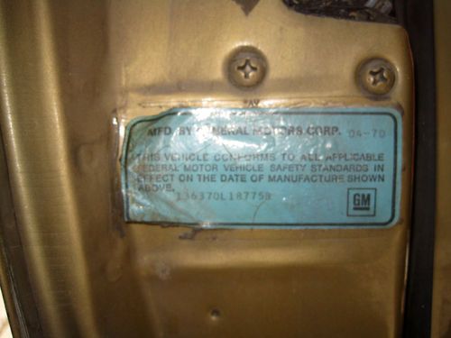 1970 Chevrolet Chevy Chevelle Malibu L48 350 With Build Sheet And Protecto Plate on 2040-cars