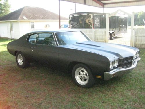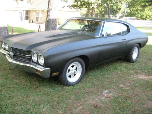 1970 CHEVY CHEVELLE SS 454 CLONE,GOOD DRIVER,ENGINE ESTIMATE 500HP,VERY RADICAL ENGINE,KEITH BLACK 11.1 COMP PISTONS,292 COMP CAM WITH ROLLER ROCKERS,750 HOLLEY DOUBLE PUMP CARB.,EDELBROCK INTAKE,HEADERS,FLOWMASTER EXHAUST,CHEVY 350 AUTOMATIC TRANSMISSION,3000 STALL,12 BOLT REAREND,POSITIVE TRACK,NOT SURE THE GEARS,I'M QUESSING 410s OR 456,HOT ROD BLACK,BLACK INTERIOR,SELLING AS-IS,NO WARRANTY,PLEASE CALL OR E-MAIL WITH QUESTIONS,PLEASE DON'T ASSUME ANYTHING YOU WON'T KNOW UNLESS YOU ASK,MY CELL IS 318-447-6659 CALL OR TEXT WITH QUESTIONS.