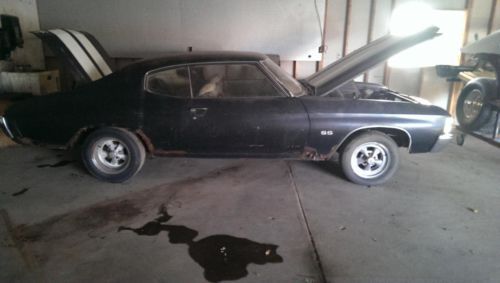1971 chevelle ss true barn find original matching number 402 turbo 400 12 bolt rear boxed control arms bench seat car needs restoration looks to be the original paint black with white strips white interior have protecto plate original order sheet car has been of the road since 1983.car is for sale local have the option to end the aution at any time.buyer is responsible for shipping will help load car my cell number is 516-790-0885