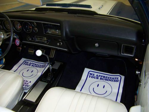 UP AUCTION FIRST THINGS FIRST THIS NOT A REAL BIG BLOCK SS BUT A WELL EXECUTED RECREATION. ABSOLUTELY GORGEOUS & ABSOLUTELY NO APOLOGIES OR DISAPPOINTMENTS!!! AWESOME COLOR COMBINATIONS IF YOU GET HERE AND FIND ANYTHING YOU AT ALL YOU DON'T LIKE ABOUT THIS CAR IT WON'T HURT MY FEELINGS IN THE LEAST AND YOU WILL NOT BE OBLIGATED TO BUY IT!! ONE OF THE BEST QUALITY CHEVELLES I'VE EVER OWNED!! TURN KEY READY TO ENJOY, EVERYTHING WORKS PROPERLY (EXCEPT CLOCK) DRIVE ANYWHERE!!! LESS THAN 10,000 MILES ON A COMPLETE RESTORATION SOLID RUST FREE N.C. CAR NON MATCH # 402 CI ENGINE WITH ALL THE CORRECT ACCESSORIES MUNCIE 4 SPEED TRANSMISSION 12 BOLT REAR END FACTORY A/C (BLOWS COLD) POWER STEERING POWER DISC BRAKES WORKING COWL INDUCTION HOOD BUCKET SEATS W/ CONSOLE/ HURST SHIFTER POWER TOP TILT WHEEL AM/FM RADIO TACH & GAUGES CORRECT WHEELS W/ NEW TIRES EVERY PIECE OF THIS CAR WAS REPLACED NEW OR RESTORED TO NEW CONDITION DURING RESTORATION!! SHOW QUALITY PAINT, GLASS, CHROME, INTERIOR ETC!! THIS CAR STANDS APART IN A CROWD OF THE BEST MUSCLE CARS!! YOU WILL LIKE IT BETTER THAN YOUR MONEY!! I am a licensed and bonded Virginia dealer but am not accepting any trades at this time. WE WELCOME ALL BUYERS WORLD WIDE!! We reserve the right to end this auction at anytime for any reason as this car IS for sale locally.... Most of my auctions end early with an accepted offer and I am followed up with a ton of the same questions wanting to know if the car sold and 9 out of 10 of my answers are yes!! If you are in the market don't wait until its over call today!!!! If you have any questions or offers feel free to call or email anytime at 276-920-1351 TO SEE OTHER CARS FOR SALE CLICK HERE>>> other items! Thanks and good luck!!! |