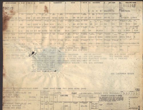 This is a very rare and desirable Chevelle. Only 70 of these cars were ever built and only 30 still exist today. This is an all-original, low mileage, matching numbers, the "real deal" car. This car is documented with two build sheets, original order form, original invoice and protecta plate. This car has 25,303 documented original miles. What makes this car even more special, in addition to only 70 ever being built, is how this one was ordered. This car has rare options including M-22 4-speed transmission, 331 posi rear-end, bucket seats, factory gauges and cowl-induction hood with hood and deck stripes. There are many Chevelles for sale, many being clones, but every so often, like with this car being offered for sale, do you get the opportunity to buy an original documented matching numbers car with low mileage. |