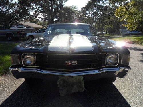Matching numbers. Car rebuilt, original 350 with all the goodies, mild cam, headers, pushing around 325 HP, less than 500 miles. Matched to original 4 speed. Have original buildsheets. Car came from Maryland. Vintage air conditioning. All original body panels. Lower quarters were cut and done with metal. New paint and stripes were done 1 year ago. These are painted stripes, base coat and clear coat. Dual exhauts, magnaflow mufflers. BF Goodrich tires. Solid car. You won't find a nicer original 1972 Chevelle SS. Bid with confidence. Read my feedback.
