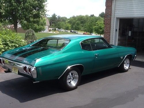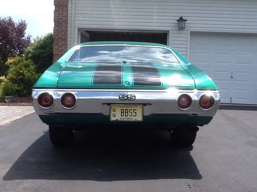 You are bidding on a Chevelle SS like no other. Rare code 36 Spring green poly paint and 95 % original ! I purchased it from the original owner who was 80 yrs old. Since I have owned it it has been meticulously redone not restored. The original owner has the car rustproofed at purchase so the car is 100 % rust free. All the sheet metal is original as well as 80 % of the paint. The interior is 100 original and in perfect shape. The engine was professionally rebuilt by Simonak Performance . It was blueprinted and balanced ported and polished and the compression was raised to 10 to 1. Cam and head work achieves 375 RWHP on the dyno while remaining 100 % matching numbers!. Transmission is a turbo 400 rebuilt with a shift kit and stall converter .The only parts on this car that are not original besides the wheels ( which I do have ) are the master cylinder radio and upgraded aluminum radiator. I have the original floor mats the protect-o-plate all manuals and key chain the car was delivered with. You will be hard pressed to find a more original untouched chevelle right down to the spare tire which is original! It rides like a dream and is quick and reliable and was Never raced. Garage kept always . I have over 40k into it and have all receipts. Good luck bidding on a truly beautiful Car!