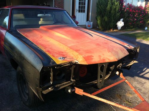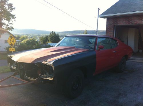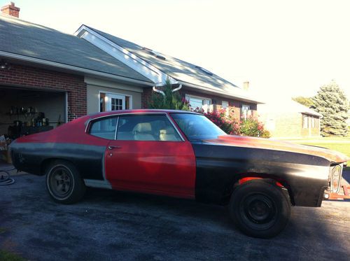 YOU ARE BIDDING ON A 1972 CHEVELLE SS REAL LS5 CAR. THE "W" IN THE VIN DESIGNATES LS5. ORIGINAL MOTOR IS GONE; IT HAS A 1972 402 ENGINE. THE CAR STILL HAS THE ORIGINAL M22 4-SPEED WITH THE ORIGINAL SHIFTER AND VIN NUMBER STAMPED ON IT. HAS ORIGINAL 12-BOLT REAR WITH 410 GEARS. FACTORY SWAY BAR AND BOXED LOWER CONTROL ARM. CAR IS EXTREMELY SOLID. HAS NEW GM NOS FRONT FENDERS. COWL-INDUCTION HOOD WITH FACTORY HOOD PINS. FACTORY DISC BRAKES, POWER STEERING. HAS ORIGINAL RADIATOR, AIR CLEANER, FAN SHROUD. CAR WAS FACTORY RED EXTERIOR, WHITE BUCKET SEAT INTERIOR. FRAME AND UNDERSIDE ARE BEAUTIFUL. SOMEONE PUT A 1/2 QUARTER ON PASSENGER SIDE, NEVER FINISHED IT. ALSO HAVE 1/2 QUARTER FOR DRIVER'S SIDE. MOST PARTS TO COMPLETE THIS CAR ARE INCLUDED AND PICTURED; ALTHOUGH SOME ARE NOT PICTURED OR MENTIONED. FEEL FREE TO CALL WITH ANY QUESTIONS OR COME LOOK. THEY ONLY MADE 5,333 SS DURING THAT YEAR AND I'M SURE NOT MANY WERE REAL LS5 CARS. THANKS AND GOOD LUCK BIDDING - STEVE (215-237-2898).