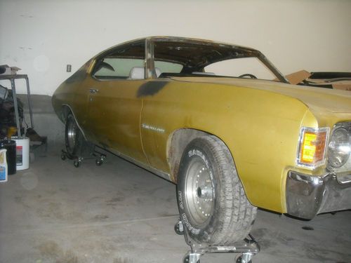 Unrestored Original Chevelle Malibu.Vin Number on engine. Needs complete restoration. Runs and drives but brakes are bad. Car sat for about 10 years would not drive before restoration. Only thing not original is intake and carb. Cowl Tag Reads. 72 13637 R 15369 743 A51 53 A 12B 509 Only about 60,000 were made with bucket seat console combination Dash Has NO CRACKS in it very nice. Trunk and floors are solid Tires and wheels that are on car in pics do not go with car. will put some on for shipping NO RESERVE Also Have Protecto plate, Original Window sticker, Owners manual Clean Title. If you need more pics call 503 333 6771