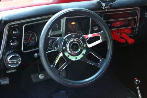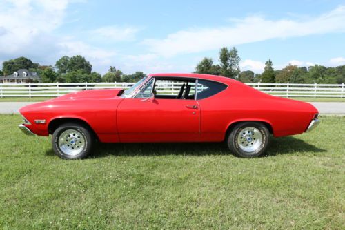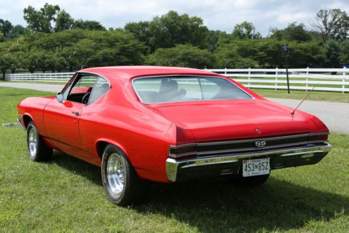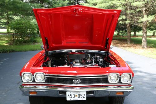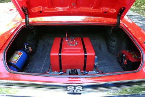 Complete ground up restore/rebuild with just 3300 mi since. The 396/325 hp has had minor mods (mild Lunati cam, roller tip rockers, Performer RPM manifold, Holley 750, Accel HEI) and includes a 125 hp NOS Powershot with 10 lb bottle and remotely activated valve. The Dodge Viper red paint has a beautiful mirror finish. It has TH400 transmission (rebuilt during the resto) with Hurst shifter, 12 bolt posi-traction rear with 390 gears, great sounding dual 3” exhaust with 2-chamber Flowmaster mufflers, and a 4” fiberglass cowl hood. All of the chrome has been resurfaced and all the badges and trim restored/replaced, the interior has been completely restored with new door panels, door handles, and carpet. All the parts were from either Year One or Original Parts Group. The seats are adjustable fiberglass racing seats with a 5-pt harness in both. It has a full set of auto meter gauges mounted in custom backing to retain the original look. The suspension has been completely redone with new springs, shocks, tie rods, sway bars & polygraphite bushings. It has the original factory power brakes with factory front discs and power steering. All of the brake lines have been replaced with line-lock installed and filled with DOT 5 fluid. The engine and trunk compartments are completely detailed. A 15 gal Harwood fuel cell is mounted in the trunk and has a separate fuel line/Holley Blue pump for the NOS. The undercarriage is spotless and shines like the top. The original SS hood is included and was painted at the same time as the car. Everything on the car has been restored or replaced and it’s ready to show or drive. |