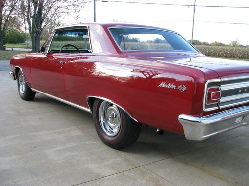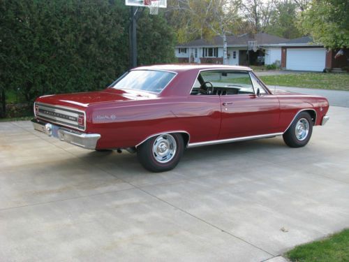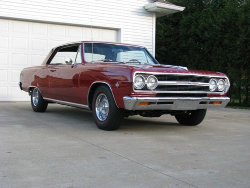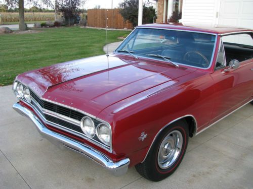 FOR SALE - 1965 Chevelle Malibu SS - true 138 car. Options include power steering, power disc brakes, 4-speed manual, am radio, 12 bolt rear end, red line Coker tires radials, 350/350hp 4 barrel carb. Vehicle was a recipient of a high end frame off restoration. FRAME - Complete frame off using all new components such as body bushings, springs, shocks, fluid lines, fuel tank, exhaust. All new floor pans installed painted correct GM black. Very well done! BODY - Complete strip and paint using PPG products. Very straight with excellent fit and finish. Wet sanded for a true high end look. New bumpers, and lots of new trim for a show quality look. Great depth and shine! all new seals. ENGINE - Is a fresh period correct 350/350hp with double hump heads complete with hardened seats. Holly 750 carb, elect. ignition, ceramic coated headers, highly detailed! Most everything is new including booster, wiper motor, carb, alt, etc, etc. INTERIOR - One simple word needed here - NEW! complete new Muncie shifter and linkage, shifts true with no rattles, mounted tach in console. PAPER WORK AND DOCS - Clean title in my name, comes with protecto plate and original owners manual and some other original documents. EVERYTHING WORKS - all lights, key locks, comes with a stereo system in the glove box, all the bases are covered. ABOUT ME - been in the restoration business for 37 years, I am not a dealer, just a Chevrolet loving collector. OVER ALL - this is a very rare Chevelle, a true 138 vin SS Malibu. This is Chevrolet's first true steal muscle car. Complete with a coded correct 4-speed and 12 bolts rear with 3:31 gearing (highway friendly) It is also the correct color Regal red. Total frame off with a folder full of thousands of dollars of parts. Hundreds of hours have been spent on this little gem! The car has been driven very little, but with that said expect a couple of chips and normal 1000 mile wear. The engine runs strong, car shifts good, interior smells new, glass in good shaped, front is new (keep in mind its age), all windows roll up and down well. Most all the trim is new, fit and finish is excellent - ITS A WASH AND WAX FIRST PLACE WINNER! HERE'S THE DEAL - this ad will run for 10 days, serious offers will be considered, if you call me we will discus the reserve. No games from my end, when I decide to sell one out of my collection its for sale! as mentioned this will be a 10 day run, after that it will be consigned to B&J for there Arizona auction. With that being said we all know the cost of the high end auctions, ebay will save me lots of time and money which I will pass on to the new owner. I have a good shipper if need be. My name is Tim, my wife says I'm easy to talk with (that has to be a good sign) NOTE I DO NOT ANSWER EMAILS!! MY PHONE NUMBER IS 920-991-9920 - my wife knows exactly were I am at all times. Serious questions will be answered by phone - thanks Tim
