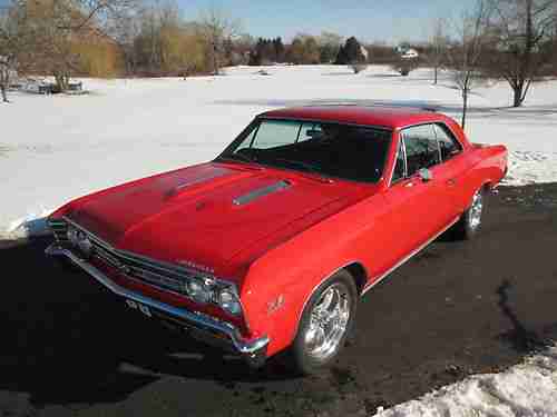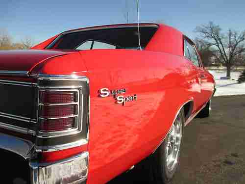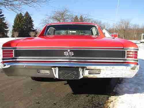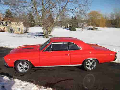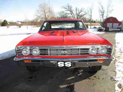 Up for auction is a Beautiful Victory Red 1967 Chevrolet Chevelle SS. This is a real SS 138 vin. This Beauty has just under 3,000 miles since complete Restoration, All Original Body Panels and Floors! This arrow straight car Is painted a Beautiful Victory Red using PPG Base Coat and Clear Coat and buffed to a glass like finish. All Chrome and Stainless is in Excellent Condition. New Windshield and all other original glass is in excellent condition.