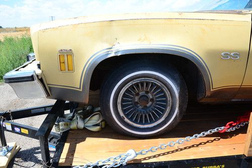 This is a very rare 1973 Chevelle SS 454 station wagon that belonged to the late Rick. I purchased it in Driggs, Idaho from his wife, who had moved out of state. From what I can tell only about 800-900 of these were made by GM and probably only a few have survived to this date. From his wife and a friend I have collected the following information. The car was driven, but the engine was going bad, so it was parked in a garage for several years with the intention of replacing the engine. A few years ago it was driven to a yard and covered with a tarp, and there it sat until his wife finally decided to sell. All tires were still inflated and the car was on blocks. The transmission fluid is clear and red and does not smell burnt. The engine oil is black, not brown, and not like sludge. The antifreeze is still in the radiator and is still green. The engine turns over freely by hand at the flywheel. It was last registered about 1994. The vehicle looks completely original. The exterior has a few rust spots, a few dents, and a bad bondo repair, but overall is in pretty good condition, nothing major. The interior seats need to be reupholstered. The floor pan looks OK. The door panels look pretty good for the age of the car, could probably keep these. The headliner looks good, but is brittle and dried out and should be replaced. The rear facing third row seat is in pretty good condition. The odometer shows about 79000, but I would guess that it has turned over. Rick had collected some replacement trim parts which will be included in the sale. The air conditioner compressor was removed and is with the car. This is a major restoration project.