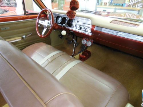 Mildly built 350 ci SBC Muncie 4 speed Eibach springs (1 1/2 inch lowering front and rear) Monroe shocks heater tinted windows wipers vents/ air new dash/ trim switched pusher radiator fan new brakes disc front vented and slotted new custom X-pipe exhaust w/flowmasters LED tail lights New Tach pin stripping Hurst shifter w/chrome bench seat handle added guages original style digital radio w/iPod attach Mahogany steering wheel Plasti dip blacked out grille much more.