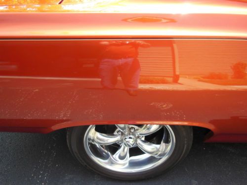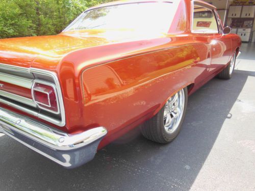 coat clear coat paint called Blazing The suspension was completely gone through this year. It was updated to a sport suspension with Eibach springs which lowered the car 1 1/2 inches, new Monroe shocks and Hotchkis sway bar makes the Chevelle handle like a sports car.