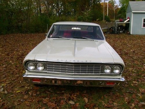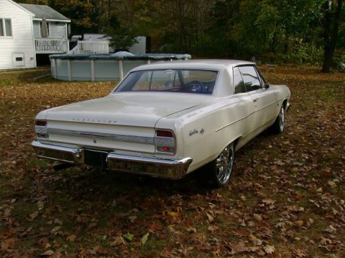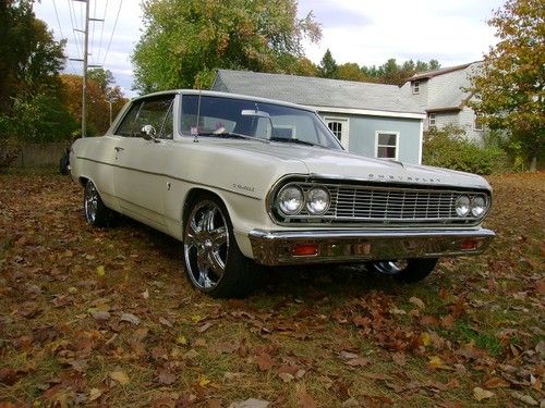 1964 CHEVELLE TWO DOOR COUPE,WITH 64,000 MILES. CHEVY 350 CRATE MOTOR WITH ABOUT 10,000 MILES. NEW UPPER AND LOWER TUBULAR CONTROL ARMS. NEW BALL JOINTS,SWAY BAR AND URETHANE BUSHINGS. HEADMAN HEADERS AND 2 1/2 INCH DUAL EXHAUST. REBUILT TWO SPEED POWER GLIDE,SHIFTER ON THE FLOOR. TEN BOLT REAR END WITH 355 GEARS,NEW BRAKES ALL AROUND. NEW FUEL LINES AND BRAKE LINES,NEW BUMPERS AND GRILL. NEW HEADLINER AND SEAT COVERS,TACH AND GAUGES. CROME 20 INCH TIRES AND WHEELS,TIRES LIKE NEW. PAINT ABOUT SIX YEARS OLD,SHOWS SOME WEAR,PAINT ABOUT A 7. THE CHEVELLE RUNS AND DRIVES VERY NICE FOR AN OLD CAR. PLEASE CHECK MY FEED BACK,PLEASE CALL DAVE FOR MORE INFO. 508 320-2200 THANKS