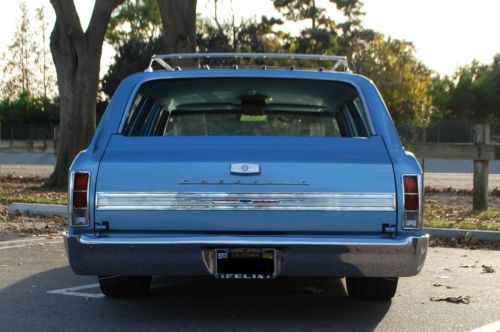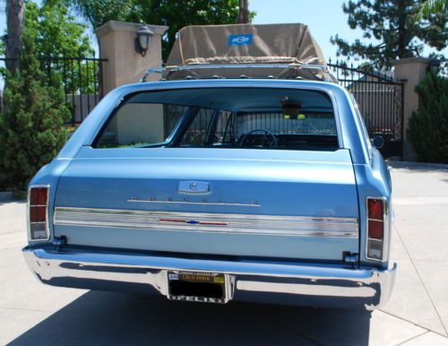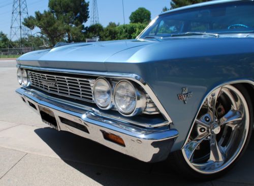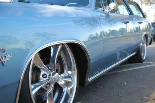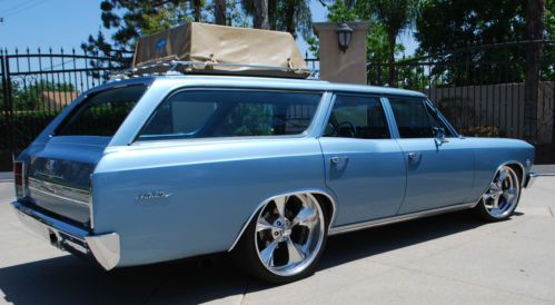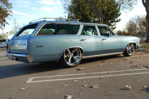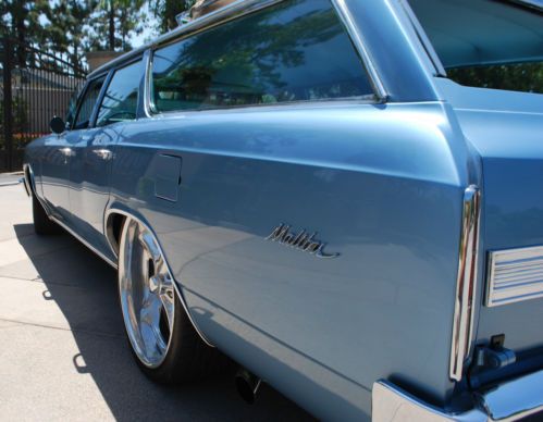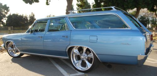 ****RARE 1966 CHEVELLE/MALIBU STATION WAGON**** For your consideration is the rarest of all Chevelle/Malibu wagons. This gem was purchased in 2001 from it's 2nd owner. Because the frame was in such great condition, I elected to do a frame up restoration. The original 327 was replaced with a beefy 350 small block and has logged approx. only 12,000 since 2002. The body was disassembled and sand blasted in and out down to metal to assure the body was straight as an arrow. Then, multiple coats of the original color, mist blue were applied. All body & paint was performed by a high end paint & body shop specializing in classic car restoration. All metals and chrome were re-chromed' replaced or professionally polished. An air-ride system was installed to give this wagon a smooth ride and to achieve the perfect stance. Large wheels and big slotted disc brakes makes for an aggressive modern hot rod appearance that is sure to turn heads. It's a guarantee that it will be one of a kind at any cruise night or car show. This Malibu has won countless awards over the years including Super Chevy Magazine's Editor's Choice & Best Wagon. It has also been featured in several hot rod publications. For the minimal things this vehicle lacks, it makes up for ten times over in other areas. From it's mere being to the ORIGINAL factory option luggage carrier. This is a perfect hot rod for the guy or gal who grew up in the back seat of a station wagon to the hot rodder with a family that may need a little extra space. This is not your parent's grocery getter. I challenge you to surf the web & other outlets in search of a 1966 Chevelle/Malibu wagon off this caliber then, come on back and place your bid. Over $40,000 was invested into this project and although this Chevelle is too cool for school, it still can be at the head of any class. This vehicle was built for show, more to be driven. With it's low miles, It has much life left. Garage and covered kept. This auction is for SERIOUS BIDDERS ONLY. Please feel free to contact me for any inquiries regarding this vehicle but, please no tech or how-to questions. The winner of this auction assumes all responsibility with regards to shipping and associated fees. Instant deposit payment of $500.00 via Pay-Pal is due at end of auction. Balance of payment is due with-in seven days off auction end by certified cashier's check. Happy bidding and good Luck. US ONLY! 1966 Chevelle/Malibu Station Wagon: 4-door 350 small block Holley 650 double pump carb Air gap manifold Aluminum radiator & large electric fan 350 turbo transmission 373 gears & posi rear end Headman headers Custom "H" pipe exhaust Dual Flow Masters Anti-sway bars front/rear Bag Man remote Air-Ride system (Fast, quiet & hidden installation) Bear slotted disc brakes front/rear Billet Specialties two-piece wheels front 20x8.5 rear 22x10 Premier Pioneer CD player, JL Audio speakers, Alpine amplifier (Hidden installation) Custom kick panel speaker pods driver/passenger New factory spec tinted front windshield (Original Parts Group) Power steering Two-tone factory spec upholstery (Original Parts Group) Factory spec door panels & headliner (Original Parts Group) Factory spec carpet kit & floor mats (Original Parts Group) Factory GM option waste bucket and tissue dispenser (Original Parts Group) Sixties style hat holder Electric front bench seat Pro-Comp Ultra-Lite gauges Electric rear window (Common scratches from motor ribbon, OPG offers replacement glass) Original factory option luggage rack & vinyl luggage carrier Restored black & gold lic plate with 1966 registration tag displayed
