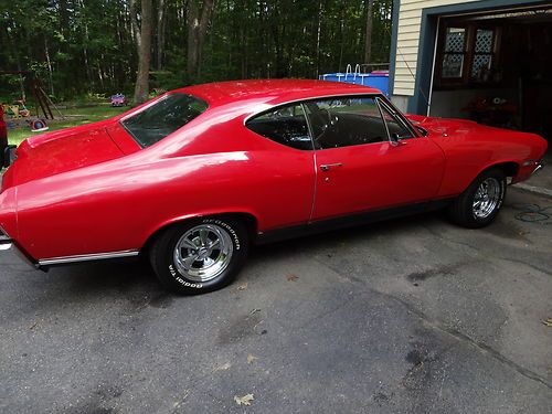 Selling my real 138VIN 1968 Chevrolet Chevelle SS. I have owned the car for 9 years and really don't have the time to put into it. The car has 69320 original miles. It runs and drives good. It has been partially restored and has the rare L78 396cuin. 375HP engine. The engine is all about power and when mated to the 12-bolt posi rear-end has unbelievable torque. It has a manual Hurst 3spd. on the floor, Edelbrock carb, Hooker Headers, Dual Flowmaster exhausts, PST suspension w/adjustable air ride, recently replaced BF Goodrich Radial T/As, Cragar SS chrome rims. It has some rust on both rear quarters in the usual places. The paint has some chips and some flaws including a front fender which is mismatched in color. I removed the carpeting as I was going to replace it this year, but have yet to do so. There is also a silver dollar sized hole in the recently redone headliner. There is a problem with the backup light switch but the lights work and can be manually turned on. The car has had the oil changed every year(Mobil 1 synthetic) and was run on only premium fuel. The frame is straight and undercoated so underneath is very clean. All in all this is a great muscle car which is really fun to drive and a guaranteed head-turner.