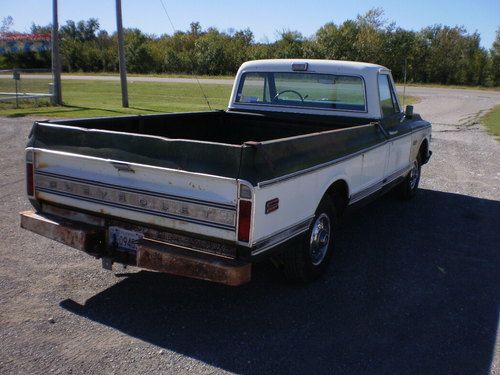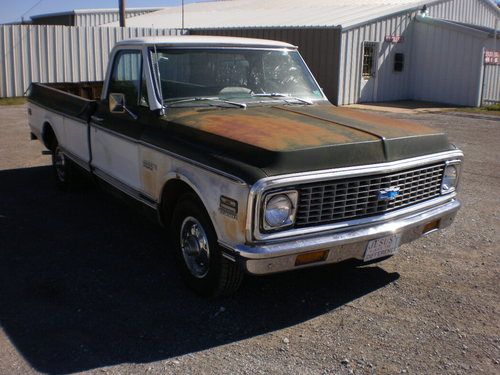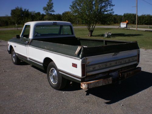 Up for sale is a TRUE 1971 Chevy Super Cheyanne. Original 2 owner truck, 1/2 ton, 2WD, 350, A/C, PB, PS, Nice SOLID old truck runs and drives great !! 373 Posi-Trac Rear End !! Would make a good restoration project or a old patina cruiser. Clean Green title. I have ALL reciepts on ALL NEW parts. Parts include New tires, master cylinder, fuel tank, fuel sending unit, carb rebuild, front brake calipers and hoses, wheel cylinders, battery, new fuel pump, front wheel bearings and seals, tune up engine, plugs, wires, cap, and rotor, and a new air filter. Nice old truck will consider trades make me an offer!! Thanks for Looking !
