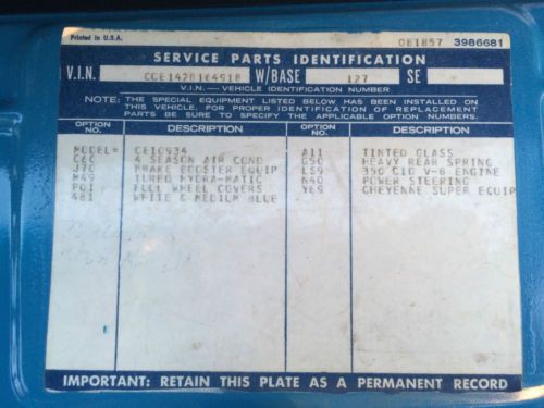 FOR SALE: You are looking at a one-of-a-kind 1972 Chevrolet Super Cheyenne short-bed that is the beneficiary of a frame-off restoration. The truck is powered by a freshly rebuilt Chevrolet 350ci V8 that is paired to a 350 Turbo automatic transmission. The truck has new paint and the new paint replicates the original colors of the truck-Medium Blue and White. The truck has all new chrome. The truck rolls on new Centerline wheels and new tires. The rear wheels are wrapped in BFGoodrich Sport Truck T/A tires and the front wheels are wrapped in Cooper Trendsetter SE tires. The truck boasts an interior that is all new. The truck attracts drivers with tilt, tach, modern stereo deck with a CD player, power steering, power brakes (disc brakes on the front), and a fully-functional Vintage Air heating and air conditioning system. The truck has an aggressive stance that is sourced from all new drop spindles and shocks as well as a 5-inch drop in the rear with shock relocators. The bed cover opens to reveal a clean and simple bed area, as seen. I have included a picture of the original Service Parts Identification sticker that remains fully intact on the glove compartment door. This sticker will show you what the truck was equipped with from new. To be completely honest, the truck is near flawless from top to bottom. The truck is a show winner and a guaranteed provider of worry-free enjoyment. The truck offers no reliability issues and the drivability of the truck is unmatched. The truck was done right and that is apparent at first glance. If you have any questions at all, please feel free to contact me at (270) 748-1882. All of the cash must be in my hand before the truck or the title will leave my possession. The truck is accompanied by a clean and clear Kentucky title. The truck is located in Henderson, Kentucky. If you want to ship the truck, I will accommodate that but a wire transfer will be required to pay for the truck before it leaves my possession. I am only interested in being contacted by potential buyers who are serious and who have the ability to pay for the truck. I greatly appreciate your interest! |