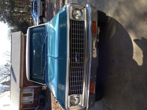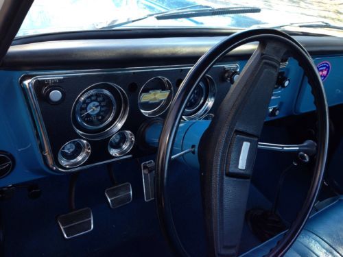 Custom SHOW quality paint ..2tone blue/white fresh from metal up!... NO rust anywhere.. Cab painted inside AND out .. Looks BETTER than new!!..ALL new side mldgs .. Tail lites.. Grills..bumpers.. FULLY rebuilt 350 dart iron heads.. Dished pistons.. Big roller cam.. Idles like a pro stocker!!..;-) 377 dyno HP on pump gas... High rise alum manifold Holley 650 double pumper ...3 on the tree manual .. New clutch..elec fan heddman Headers coated... 4to 1 starter and new battery..custom flow master dual exhaust ...sounds GOOD!! New carpets headliner and bench seat covers..3point belts installed.. Full Stewart Warner gauge update!!.. New michelin 31x15 tires on Chevy steel rims with NEW trim and caps.. FLAWLESS $$ paint IN and out of cab.. Inside of bed as well .. VINTAGE AIR retro kit installed ... Idles and drives anywhere... Runs cool . NO !! Disappointments !! ....... Only 5800 miles since restoration!!. Located in GREENSBORO. NC ... Clear clean title in hand.. |