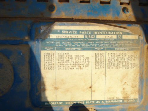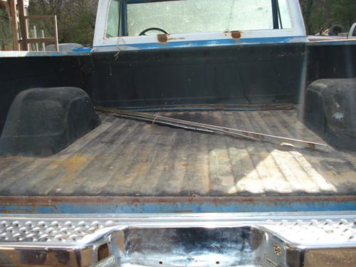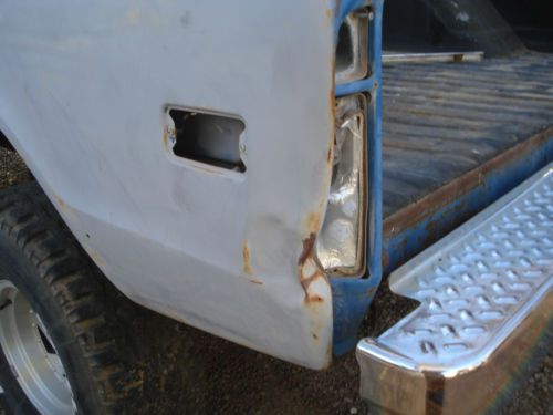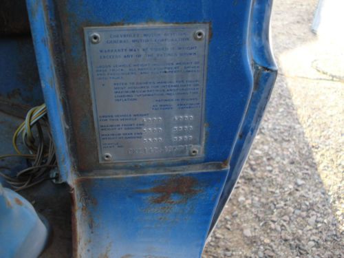 350 ENGINE, 4 SPEED MANUAL TRANSMISSION, A/C, POWER STEERING, POWER BREAKS, 4" LIFT, MATCHING NUMBERS ON FRAME AND BODY, THE ENGINE I AM UNABLE TO CHECK BUT IT SHOULD BE THE ORIGINAL MOTOR AS WELL. LET ME TELL YOU ABOUT THIS TRUCK AS MUCH AS I CAN: TRUCK IS LOCATED IN ARIZONA AT MY FATHERS HOUSE WHO IS THE ONE SELLING IT...BUT IS OLD SCHOOL :) AND DON'T KNOW HOW TO ADVERTISE ON EBAY....SO HERE I AM DOING IT FOR HIM. THIS TRUCK WAS RUNNING WHEN PARKED ABOUT 10 YEARS AGO WHEN MY FATHER WANTED TO RESTORE IT. HE STARTED WITH THE BED BY TAKING IT OFF AND SANDBLASTING THE FRAME AND PAINTING IT. UNDER THE CAB HAS NOT BEEN DONE. THEN HE TOOK OUT THE STUFF IN THE CAB SO HE COULD GET THE SEAT REUPHOLSTERED...I DO NOT HAVE A PICTURE OF THE SEAT BUT IT IS INCLUDED AND STILL NEEDS TO BE REUPHOLSTERED. EVERYTHING FOR THE DASH IS INCLUDED. THERE IS A CRACK ON THE FRONT WINDOW AND THE REAR WINDOW IS OUT BUT IS INCLUDED. THERE IS ONE SPOT OF RUST SHOWN IN PICTURE ON THE LOWER CORNER OF THE CAB ON THE DRIVERS SIDE. THE MAIN DRIVE LINE AND TAILGATE IS OFF BUT DOES COME WITH THE TRUCK. THERE IS NO RUST ON FLOOR OF THE CAB AND IS VERY SOLID. THIS TRUCK DOES HAVE A SALVAGE TITLE FOR A REASON WE DO NOT KNOW. MY FATHER BOUGHT THE TRUCK WITH THE SALVAGE TITLE ABOUT 11 YEARS AGO. THIS TRUCK IS VERY HARD TO FIND AND WE ARE SAD TO SEE IT GO BUT HE IS MOVING CLOSER TO ME IN TENNESSEE AND NEEDS TO GET RID OF HIS DREAMS. :( IF YOU HAVE QUESTION AT ALL PLEASE FEEL FREE TO CALL MY FATHER AT 928-978-4528 IN ARIZONA. PLEASE DON'T CALL BEFORE 9AM OR AFTER 9PM. (THANK YOU SO MUCH) HE ALSO HAS A 1972 CHEVY BLAZER AS WELL.....JUST A THOUGHT!--------HE IS A BIG CHEVY FAN. WELL THANK YOU FOR TAKING THE TIME TO READ MY STORY AND INFORMATION ON THIS BEAUTIFUL TRUCK AND HOPE IT GOES TO A HOME THAT WILL MAKE HER GORGEOUS ONCE AGAIN. BUYER WILL NEED TO PUT A $1,000.00 DEPOSIT WITHIN 48 HOURS AFTER THE END OF AUCTION THROUGH PAYPAL AND HAVE 10 DAYS TO PAY IN FULL WITH CASH AND TO BE PICK IT UP OR GET IT DELIVERED. (BUYERS RESPONSIBILITY) |