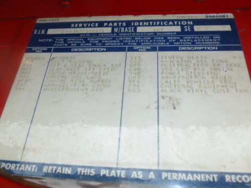 This is a super clean, super nice 1972 Cheyenne pickup with its original California rust free body. It is highly optioned with power steering, power brakes, factory A/C, four wheel drive, Black Houndstooth interior, dealer installed cruise control, GM compass, tissue dispenser, overflow tank, under dash lights, window vents and the step and tow bumper. It still has its California blue license plates with the original dealer license plate frame. Also the build sheet is still on the glove box door and the original paperwork is there including the protecto plate. This is a super nice truck with one repaint the original two tone medium red and white color. It was bought from the original owner and of course has its matching number 350 engine and even the smog is still on the engine. This truck runs and drives mint, is rust free and highly optioned with only 42,000 original miles. Trucks like this do not come around too often.