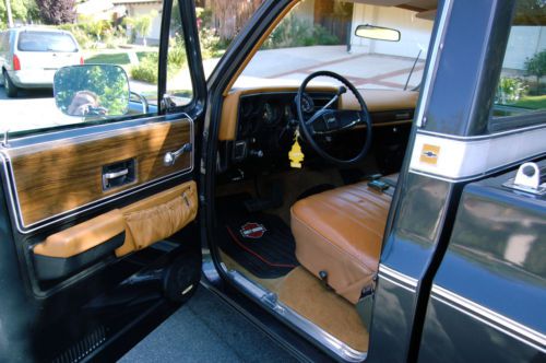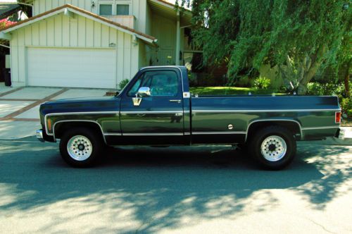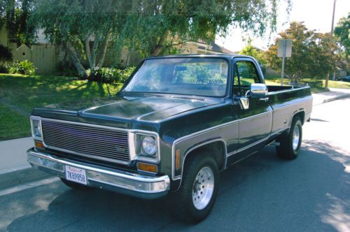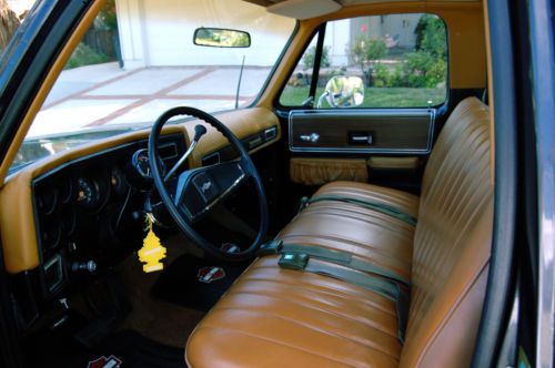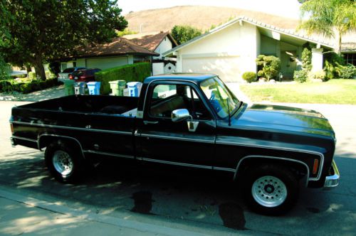 1973 Chevy truck , Original California Built, Rust free,99k original miles, Strong 454 big block Engine, Turbo 400 Automatic transmission, 14 Bolt Posi Rear End , New 800 CFM Edelbrok Carburetor and intake , Doug Thorley Headers , Duel Flowmaster 40 series. Disc brake, Power Steering This truck starts, drives and stops excellent! A very fun truck to drive. It sounds fantastic! Solid body and great interior, New Weather strip, Baseball "Leader interior", Leather Seat, Leather Dash, Leader door panels and trims, new carpet and headliner, FM CD Player. Working Cold Air Condition! Everything works, Lights, turn signals, parking brake, Horn. Come see and drive the truck, you won't be disappointed. This is a very reliable classic truck with no smog check requirement , You can drive it any where! Great bed, tow hitch , Email me for more information.