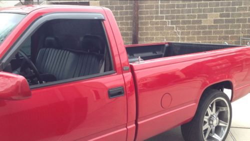1994 Chevrolet Cheyenne V8 5.0L 4X2, 24" wheels with tires, 8ft long Bed, DVD touchscreen, Digital AC/Heat, 97000 Miles original, I did the restoration of this truck 1 year ago, exterior e clean fresh painted "Red", with nice black interior, No mechanical problems, Cherry bomb muffler, HID, Power Lock, Power Windows, Remote Start, Alarm with shock sensor. My plan was, install a air suspension and work on engine and transmission make this truck get at least 500hp. Running low on money and need to sell.I have a lot more invested than the price I'm asking for. Please fell free to bring mechanic.
