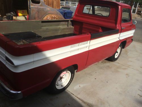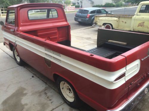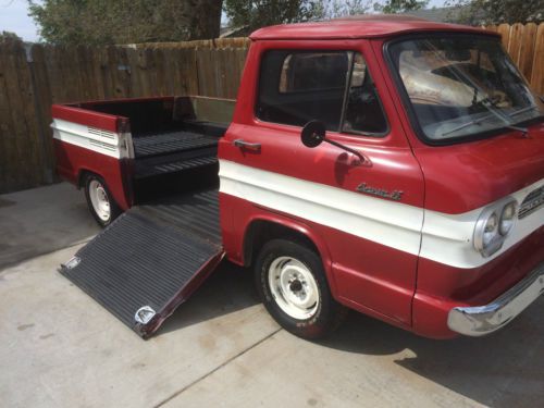 1961 Chevrolet corvair Rampside pick up. this is 100% barn find it was just purchased from the original owner. Odometer reads original miles. Previous owner is well over 80 years old and parked it about a year ago, truck still had insurance and registration, it was his daily driver at his ranch, the truck runs good,you can drive this truck anywhere, the paint on the truck still shines,but it has scratches from the hay he use to pick up. Built from 1961-1964 on a limited production run,less than 3,000 produced,less then 300 of the rampside pick up now remain. Perhaps none as tidy as this example. Already a Classic investment opportunity, as well as a great driver. This pick up is been all ways in Nevada desert and has zero rust, rear mounted 145 Ci air cooled flat 6 engine dual carbs and 4 speed transmission, the interior is all original but is missing the radio,for any more question please call me at 775 404 2173 thanks