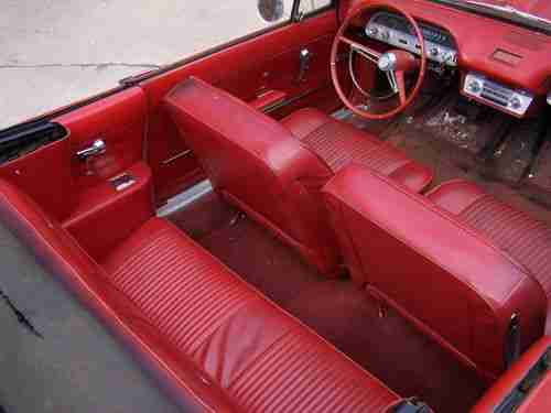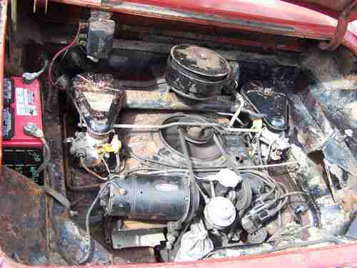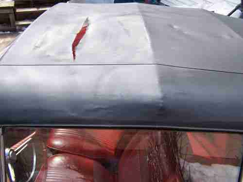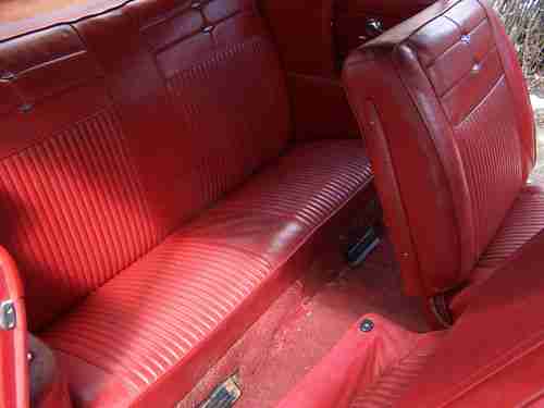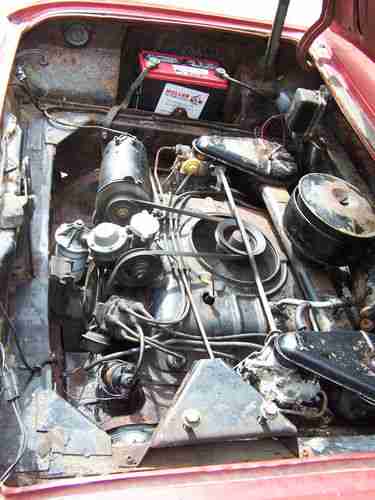 As far as I can tell it is 100% original red paint, has red vinyl interior and carpet which is also 90% perfect. The black convertible top goes up and down manually and would be in great condition except for two huge cuts through it.( the rear window is in great condition)