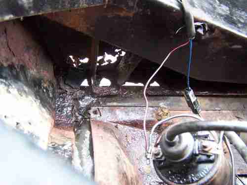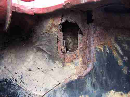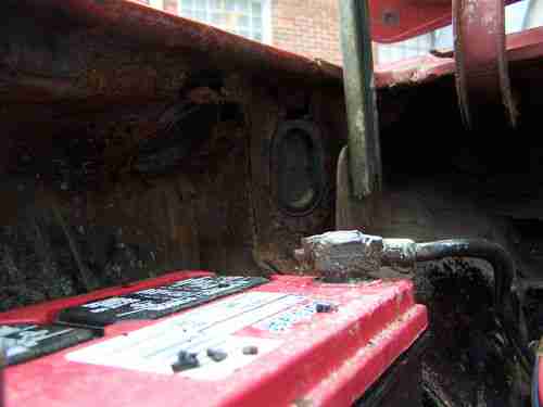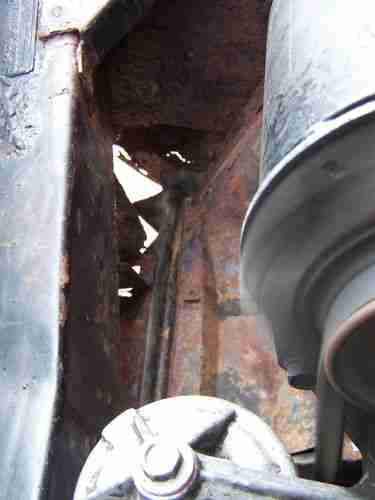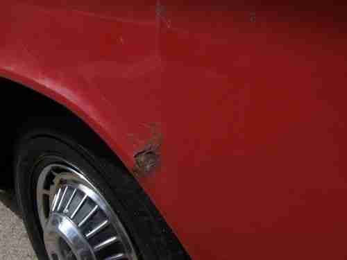Although not major, it does have some rust , I tried to capture the rust areas with the camera and have not done anything to cover or repair it. The floor has a six inch 'slice' in the metal under the drivers seat as if it had run over something in the road but it is slender and solid metal which should be easy to weld. It is located in a spot where there is a factory brace under the seat so it has not weakened the floor. The rest of the floor has a basic scaling of metal but no holes and is amazingly solid. The trunk is original spackle paint, and has very minimal surface rust in the front corners and no holes. There is some miscellaneous rust on the car that should be dealt with but not structural. (If you are serious, I have pictures I can provide immediatly) The right front fender is rusted through(see photo)