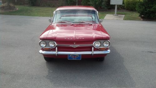 Restored 64 Corvair. Automatic, 110 Engine, Dual Exhaust, Approximately 6000 miles on engine, Red Exterior with White Interior.Garage Kept. Runs very well w/no smoke. Mileage on rebuilt engine is 6000.