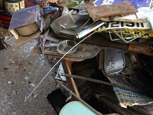 1964 Chevy Corvair garage kept forever. Tons of parts to go on original body with no dents and a tiny amount of rust-thru. Original red color on body and front/rear lids. Driver's door is primer red and there is a replacement door for it. All the light and marker stamped pieces are in great shape and there are multiples of some. Crazy amount of stuff in box after box of parts.