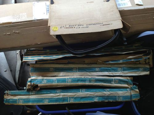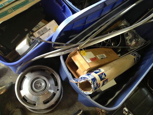 Parts and More - As you can also see from the pictures, I have all the parts to put back together, plus some. I have the original Corsa dash that came with the car that is still in nice shape (has been in dry storage for the past 13 years) and I also have an EXCELLENT shape Corsa dash that I bought off of ebay back in 2008. It was originally pulled from a car in the late 60's and was put up in storage and forgot about until 2008. I won the auction for around $550, and it is in EXCELLENT shape. I also have a bunch of air conditioning parts. Not a complete unit, but pretty close. This was a collection pulled from a parts building. I also have the interior from the 1968 Monza, and I also have a 1966 Corsa interior from another car I had at one time, and I think the original Corsa door panels. The seats that are in it came out of the 68. As some of you may know, the 65-66 seats (bigger) are different from the 67-69 seats (smaller). The The 66 seats would be the correct fitting seats, but need repadding and recovering. All the door panels still have the original hardware, emblems, etc. so you could save money by ordering just the cardboard backing and the cover instead of ordering the complete panels. I do have all of the chrome window molding, as well as another set (front or rear) that I bought off of ebay at one time that is in really good shape. It is still in the original shipping box. Also have another front trim bar that has the trunk lock in it as well. Not perfect shape, but nice for a daily driver. I do have the original rear section that goes below the bumper with the split chrome grills. Both grills are still in great shape. I also have some NOS complete door fuzzies and door weatherstrip, along with several reproduction parts including the Corvair script emblem, gas tank float and sending unit, engine wiring harness, turn signal arm, etc. I also have a 65-66 telescopic wood wheel to go with the car as well. This will also fit Corvettes of this era as well? I also have a complete set of 1968 factory tinted glass to go too if the buyer wants it. The wheels I had for it came off a 70s Oldsmobile, but I did find a full set in ok shape Corsa hubcaps.