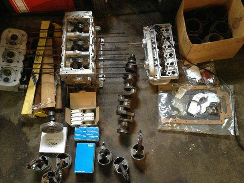 Motor/Drivetrain - The motor that is in it know came out of a 1966 Corsa that I had at one time. You could get it running, but it did have some lifter clack, leaky seals, etc. It would be ok to just putt around town in, but really needs a rebuild. As you can see from the pictures, I have another complete 140 motor. The heads have been reworked and ready to be installed. The block has been cleaned and checked. I have all new TRW forged pistons .30 and all new TRW bearings, new cam with new Clark's Cam gear (the cam gear that is on it is just for test purposes), all new gaskets, rings, seals, new blower bearing and idler pulley bearing as well. All the motor needs is just to be put back together. The transmission is a 4 -speed Munci transmission. (The good ones). I do not have a complete set of carbs for this car. I have robbed them for something else. You can always buy the correct rebuilt primaries/secondaries from Clark's Corvair Parts.