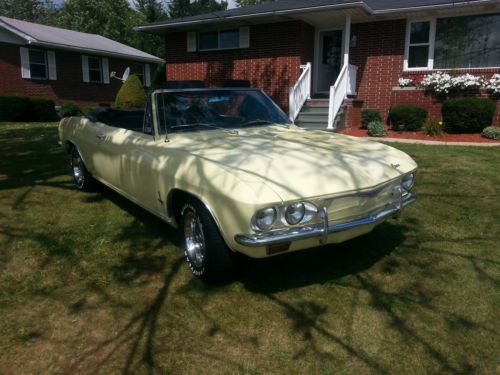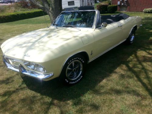 1965 Chevy Corvair Convertible 140 hp newly rebuilt 4 speed nice car to drive selling for a friend not perfect paint but very respectable with a deep shine excellent interior dash and door panels small chip in windshield could easily be repair all windows go up and down nicely new tires stops smoothly getting harder to find in convertible every day A little rust showing where repaired |
