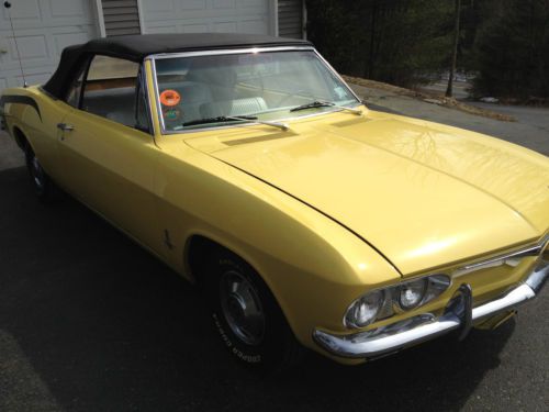 UP FOR AUCTION IS A BEAUTIFUL 1965 CORVAIR MONZA 4 SPEED CONVERTIBLE. VERY NICE OLDER RESTORATION WITH SOME SMALL BUBBLES SHOWING ON BOTTOM OF ROCKERS. I HAVE A YOUTUBE VIDEO OF THE CAR THAT GOES OVER EVERYTHING COMPLETELY. CLICK LINK http://youtu.be/SfEiveuwTig THE CAR HAS VERY GOOD TIRES, 4 NEW CARBS, NEW HEADS AND NEW GAS TANK. AFTER THE HEADS AND CARBS WERE INSTALLED BY A FRIEND, I HAVE BEEN UNABLE TO GET THE CAR RUNNING. IT BACKFIRES WHEN TRYING TO START. NOT SURE IF TIMING IS OFF OR WHAT? THAT IS WHY I AM SELLING SO CHEAP. IF YOU KNOW HOW TO WORK ON CARS THEN THIS WOULD BE A GREAT PROJECT AND MONEY MAKER. CAR IS SOLD AS-IS. BUYER IS RESPONSIBLE FOR ALL SHIPPING COSTS AND ARRANGEMENTS. YOU CAN CONTACT WWW.USHIP.COM FOR SHIPPING QUOTES. IF YOU WANT TO TALK ABOUT THE CAR, GIVE ME A CALL AT 518-428-5651. I HAVE CLEAR TRANSFERRABLE REGISTRATION. MAKE SURE YOU CHECK OUT THE VIDEO. I GO OVER EVERYTHING ABOUT THE CAR. $500 DEPOSIT DUE WITHIN 24 HOURS OF AUCTION CLOSE TO PAYPAL. REMAINDER DUE WITHIN 3 DAY WITH CERTIFIED FUNDS. CAR WILL NOT BE RELEASED FOR SHIPMENT UNTIL ALL FUNDS CLEAR.