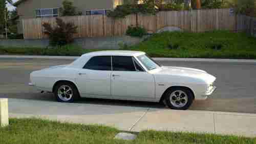 65 corvair 4 dr. 110 auto ac white vinyl top-looks like convertible.
