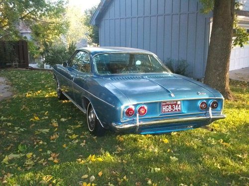 1966 Chevy Corvair Monza, True Survivor Car, Purchased locally on January 3, 1966 from Van Chevrolet in Mission, Kansas. Sold in 1998 to local gentleman. I purchased the Corvair from the estate in July 2013 with the intent to restore. I have decided to concentrate my efforts on a 65 Corsa instead. I have old service records ranging from Master Cylinder, Gas Tank Fill Neck, Heater Tubes, Crankcase Gasket, Oil Pan Gasket, Control Arms, Front Seat Vinyl Replacement, includes records of oil changes. The car was driven very little sense 2000, shows only 5800 miles in 13 years. Floor Pan, Trunk and Rockers are solid. Car is showing rust in the front fender dog legs and forward section of the rear fenders. Cowl is just starting to show some bubbling. The driver side rear sail panel has been pushed in, I have a NOS Replacement metal replacement panel included for repair.Driver door has a very small dent, which almost looks like it could be just popped out. Engine runs very good, transmission shifts like it should. Steering is tight. A/C is working but after using it some this summer it is not blowing as cold as it was, suspect the seals are leaking a little. All the gauges and lights are working as they should. This car would be a great driver or a excellent Corvair to restore with minimal rust repair. Car has had one repaint long time ago,I would rate the current paint a 4 out of 10. The current Mileage of 88,863 is actual. I have the car listed locally and reserve the right to end auction if I sell. I will release car after all funds have cleared my bank. I have a clear title in hand. Please let me know if you have any questions.