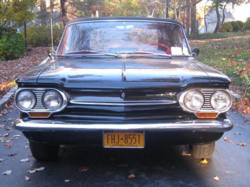 ~1963 Covair Monza~ A great little summer getaway car Solid build, everything works as it should This little 1963 Chevrolet Corvair Monza Convertible is a real find ! I was out driving this BEAUTY recently to take the pictures and I felt like I was driving a time machine and had gone back to 1963 !! This car was purchased a few years ago and everything that needed attention was fixed or repaired, (including a brand new tranny) Just look at this thing! This Corvair is ready to drive anywhere~ Thousands of dollars and many, many, many hours were spent on the restoration / build, care, upkeep and indoor storage. Cars like this were quite a novelty in their day to say the least but now, in this kind of shape ? What a find! Any Corvair enthusiast would be pleased to own this BEAUTY. When I was taking the pictures I noticed how easy it was for one person to put the top up and down. The Red Seats are in VERY NICE condition and looks BEAUTIFUL. VERY NICE RED vinyl rear bench seats, VERY NICE RED carpeting, VERY NICE ORIGINAL Corvair Monza steering wheel, VERY NICE matching Black vinyl door panels, VERY NICE factory gauge clusters, NICE ORIGINAL Black vinyl sunvisors and a VERY NICE ORIGINAL vinyl dash pad with NO CRACKS !! This Corvair Convertible is nicely equipped including a factory floor mounted shifter, working original Delco AM radio, good heater and defroster, factory wing windows, factory guage clusters with a 100 mph speedometer, day / night rear view mirror, power wipers, factory back up lights, original chrome driver's side view exterior mirror and a rear mounted full size spare tire. The CLEAN - SOLID - "front trunk" area is great for storage. It is a really COOL little vehicle. All of the ORIGINAL light lenses and reflectors are clear, bright and BEAUTIFUL !! Check out the FACTORY ORIGINAL Monza stainless steel wheel covers and NEWER whitewall steel belted radials, boy does this combination look outstanding on this BEAUTY and really retains that clean "FACTORY ORIGINAL" look !! All of the ORIGINAL exterior chrome and stainlees steel body trim and moldings are in VERY NICE condition including VERY NICE ORIGINAL Chrome front and rear bumpers, NICE ORIGINAL Monza badging and good ORIGINAL aluminum headlight surrounds The owner of this and all of the other cars was a collector, these fine cars were always stored inside of a climate controlled building. They were on display and parade cars and were only driven on special occasions. Any and all repairs and upgrades were done via a local professional classic car repair and restoration company. No do-it-yourself work was done on any of these cars. This car is currently sitting along side of her five sister collectable cars in a climate controlled building in Port Jefferson on Long Island NY. This Black Beauty is current on its inspection and has plates on it. Please feel free to contact me with any questions and to make an appointment to see this gem car. Other cars are being offered by appointment only. |
